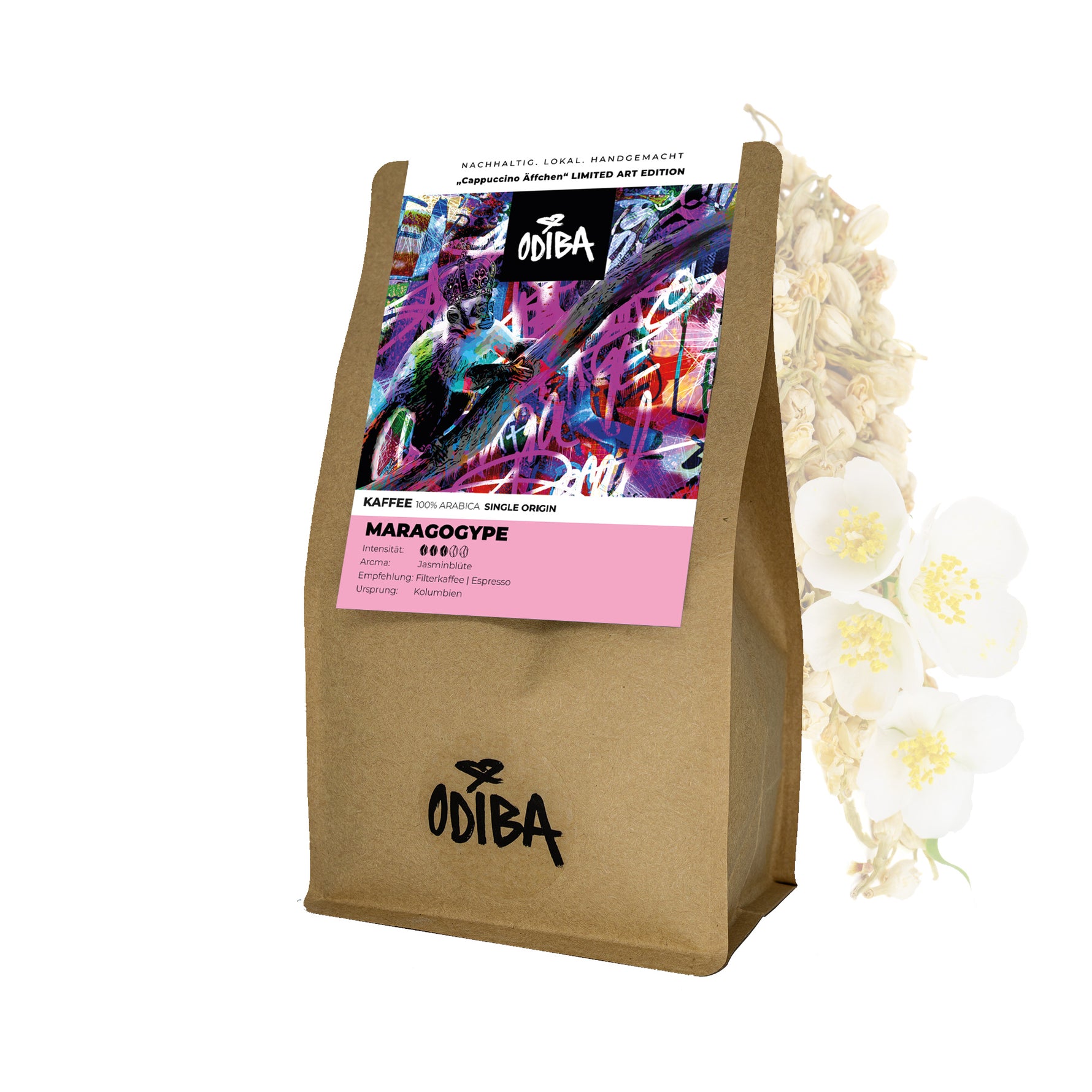 Entdecke das Besondere mit „Maragogype“ – ein Single Origin Filterkaffee aus Kolumbien, liebevoll als Elefantenbohne bekannt. Diese außergewöhnlich großen Arabica-Bohnen, gewachsen in Vulkanasche, präsentieren eine angenehme Fülle und ausgewogene Balance von Süße und Säure. Mit blumigen Nuancen und Noten von Jasminblüten, bietet dieser Supremo ein unvergessliches Geschmackserlebnis. Perfekt zubereitet mit Handfilter oder French Press. Erlebe die Berglandschaft Kolumbiens in jeder Tasse „Maragogype“.