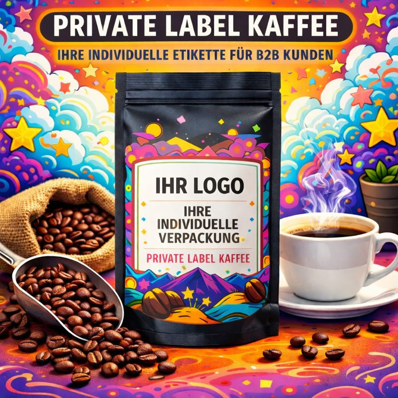 Kombinieren Sie dieses Produkt mit Ihrem eigenen Auftritt. Unser Private-Label-Kaffee bietet Ihnen individuell gestaltete Verpackungen und ausgewählte Kaffeesorten – ideal für Gastronomie, Unternehmen oder besondere Anlässe. Wir begleiten Sie von der Idee bis zum fertigen Produkt.